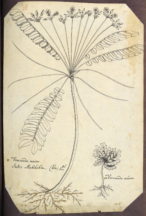 IMAGE 5: Georg Joseph Kamel, ‘Camellus. Drawings from the Philippine Islands’ Vol. I. Sloane MS 4080: 1686-1706, fol. 39r. Description of the manuscript’s contents: “Drawings and descriptions of plants from the Philippines by George Joseph Kamel. Volume 1 of 6. This volume contains 123 sheets of annotated drawings and 16 sheets containing descriptions of the plants. Many of the plants in this volume were described in an appendix to the third volume of John Ray’s Historia plantarum (London: S. Smith and B. Walford, 1704). References to each work (‘G.N.’ or ‘Ray’) have been added to the drawings, some in the hand of James Petiver.” Part of the Sloane Manuscripts (Sloane MS 1-4100: c. 1000-c. 1750). British Library.