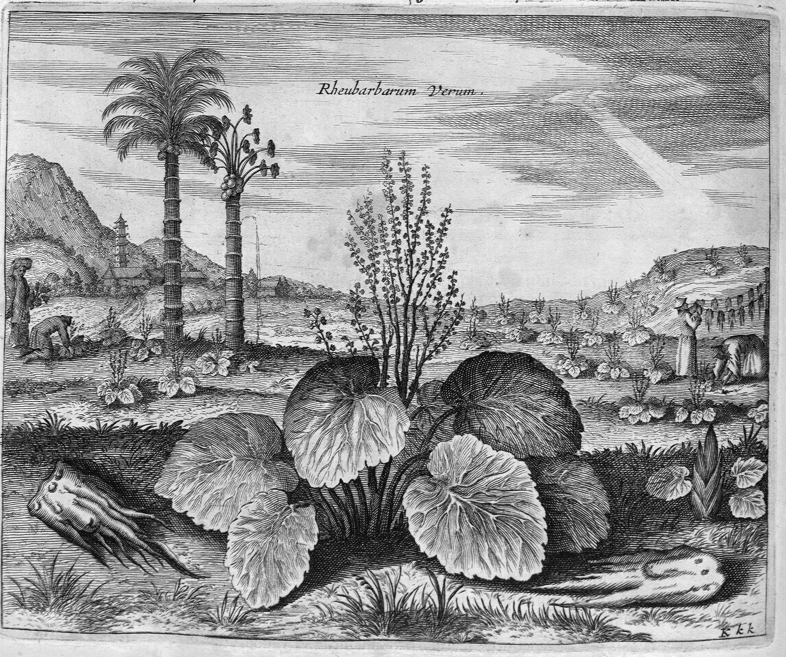 IMAGE 34: Rhubarb: a valuable Asian medical commodity. Athanasius Kircher (1602-1680), ‘Rheubarbarum Verum’, in Kircher, China monumentis : qua sacris quà profanis, nec non variis naturae & artis spectaculis, aliarumque rerum memorabilium argumentis illustrata (Amsterdam: Johannes Janssonius van Waesberge and Elisée Weyerstraet, 1667). Fondo Antiguo de la Biblioteca de la Universidad de Sevilla, Spain, downloaded from Wikimedia Commons. Creative Commons Attribution 2.0 Generic (CC BY 2.0).