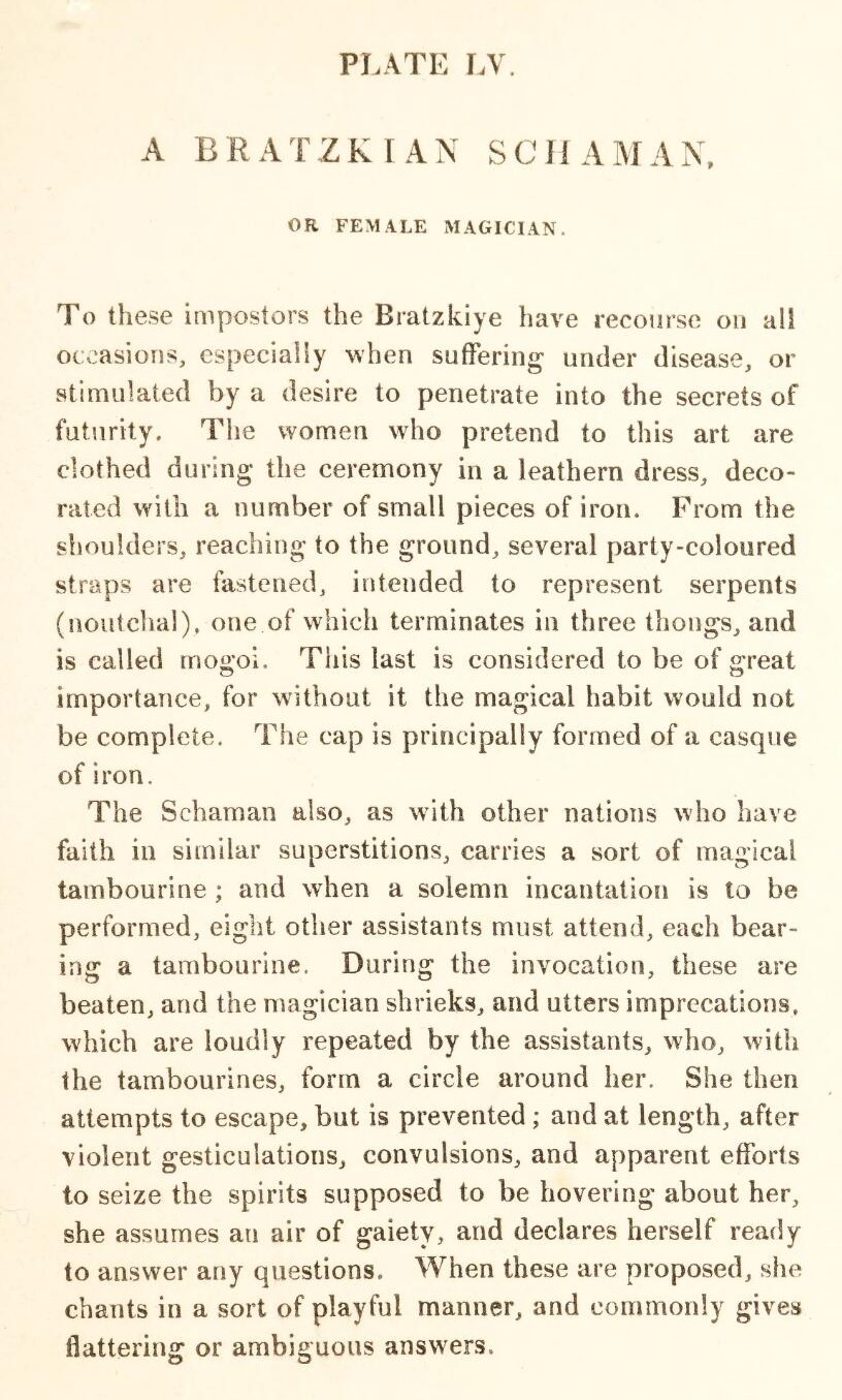 IMAGE 40: Magic and Healing. Description of ‘A Bratzkian Schaman, or Female Magician’, in W. Alexander, Picturesque Representations, following plate 55. Wellcome Collection. Public Domain.