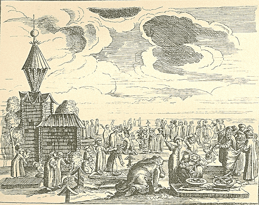 IMAGE 12: Adam Olearius, ‘Russian women mourn their dead (commemoration of the dead)’, in Adam Olearius, Opisanie puteshestviia v Moskoviiu (1906 [mid-seventeenth century]). BUK VO Regional Universal Scientific Library, Russia.