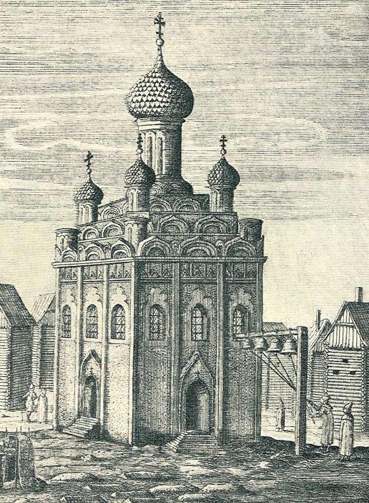 IMAGE 5: Adam Olearius, ‘The Church at the White Wall in the Kremlin’, in Adam Olearius, Opisanie puteshestviia v Moskoviiu (1906 [mid-seventeenth century]). BUK VO Regional Universal Scientific Library, Russia.
