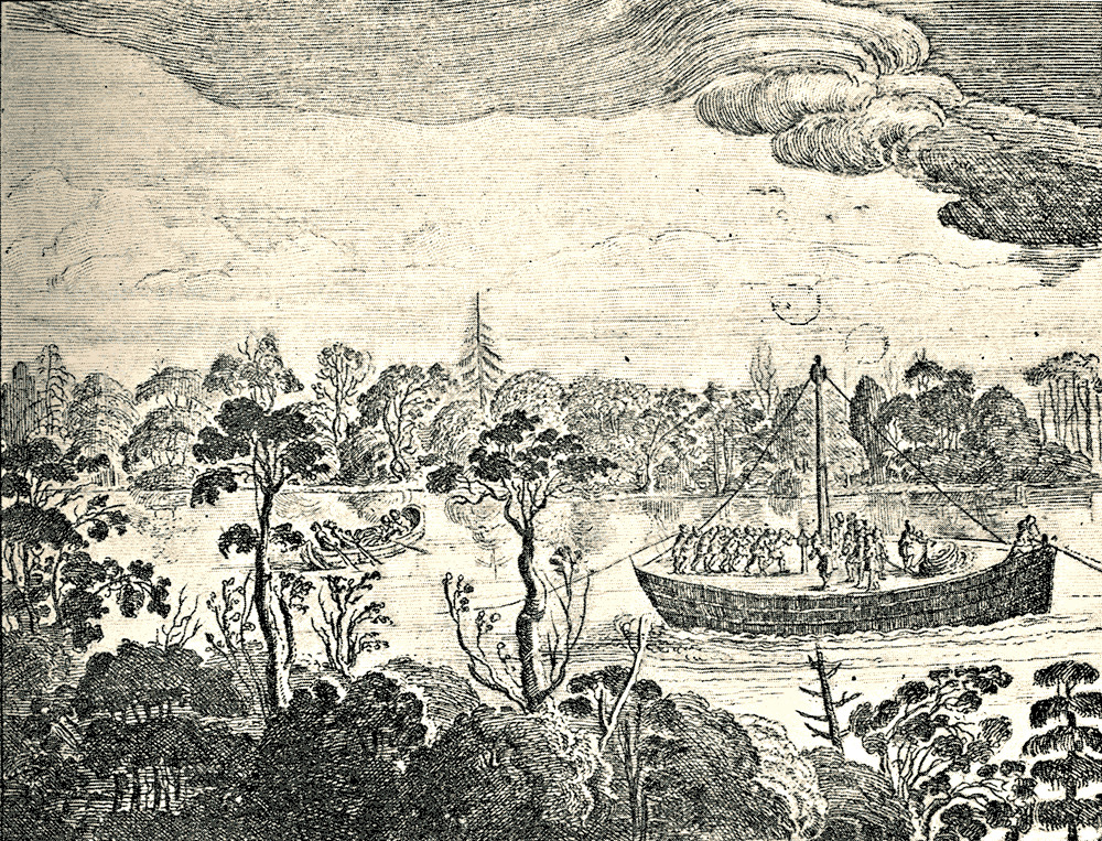IMAGE 42: River transportation. Adam Olearius, ‘Strug on the Volga’, in Adam Olearius, Opisanie puteshestviia v Moskoviiu (1906 [mid-seventeenth century]). BUK VO Regional Universal Scientific Library, Russia.