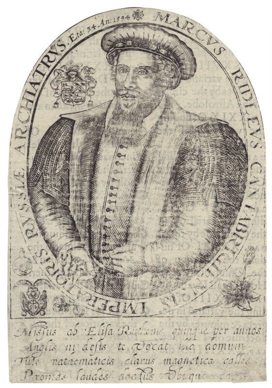 IMAGE 13: A Western-European Physician at the Russian Court. After Unknown Artist, Portrait of Mark Ridley (1560-1624), physician and mathematician; he became personal physical to the Russian Tsar in the 1590s. Line engraving, circa 1613 (1594). 5 3/8 in. x 3 3/4 in. (136 mm x 94 mm) paper size. NPG D40451. © National Portrait Gallery, London.