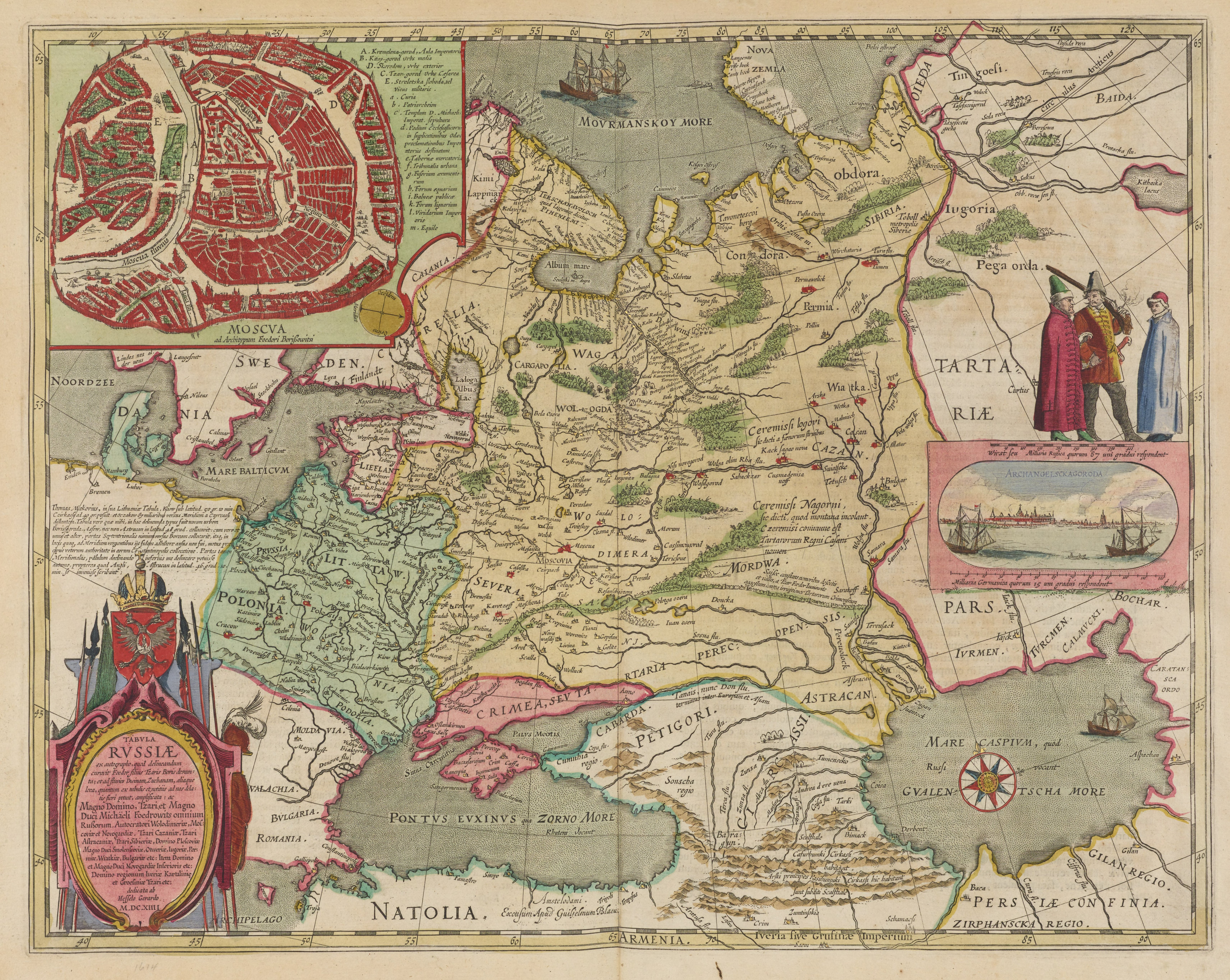 IMAGE 15: Russia in the Seventeenth Century. ‘Tabvla Rvssiae’ (1665), in Joan Blaeu (1596-1673), Atlas Maior Sive Cosmographia Blaviana, Qua Solvm, Salvm, Coelvm, Accvratissime Describvntvr (Amsterdam: Joan Blaeu, 1665). Description: “Blaeu’s 11 volume Atlas Maior is considered by many to be the greatest atlas ever published, both in its own time and even today. It excels in comprehensiveness, engraving, color, and overall production….This copy is from the National Library of Scotland and we are grateful to them for providing scanned images of the atlas as part of a joint project under the guidance of Christopher Fleet, Senior Map Curator at the NLS.” Dimensions: Object Height: 43 cm; Object Width: 55 cm. List Number: 10017.089. Pub LIst Number: 10017.000. Image Number: 104187395.1.jp2. National Library of Scotland / David Rumsey Historical Map Collection. © 2000 by Cartography Associates. Attribution-NonCommercial-ShareAlike 3.0 Unported (CC BY-NC-SA 3.0).