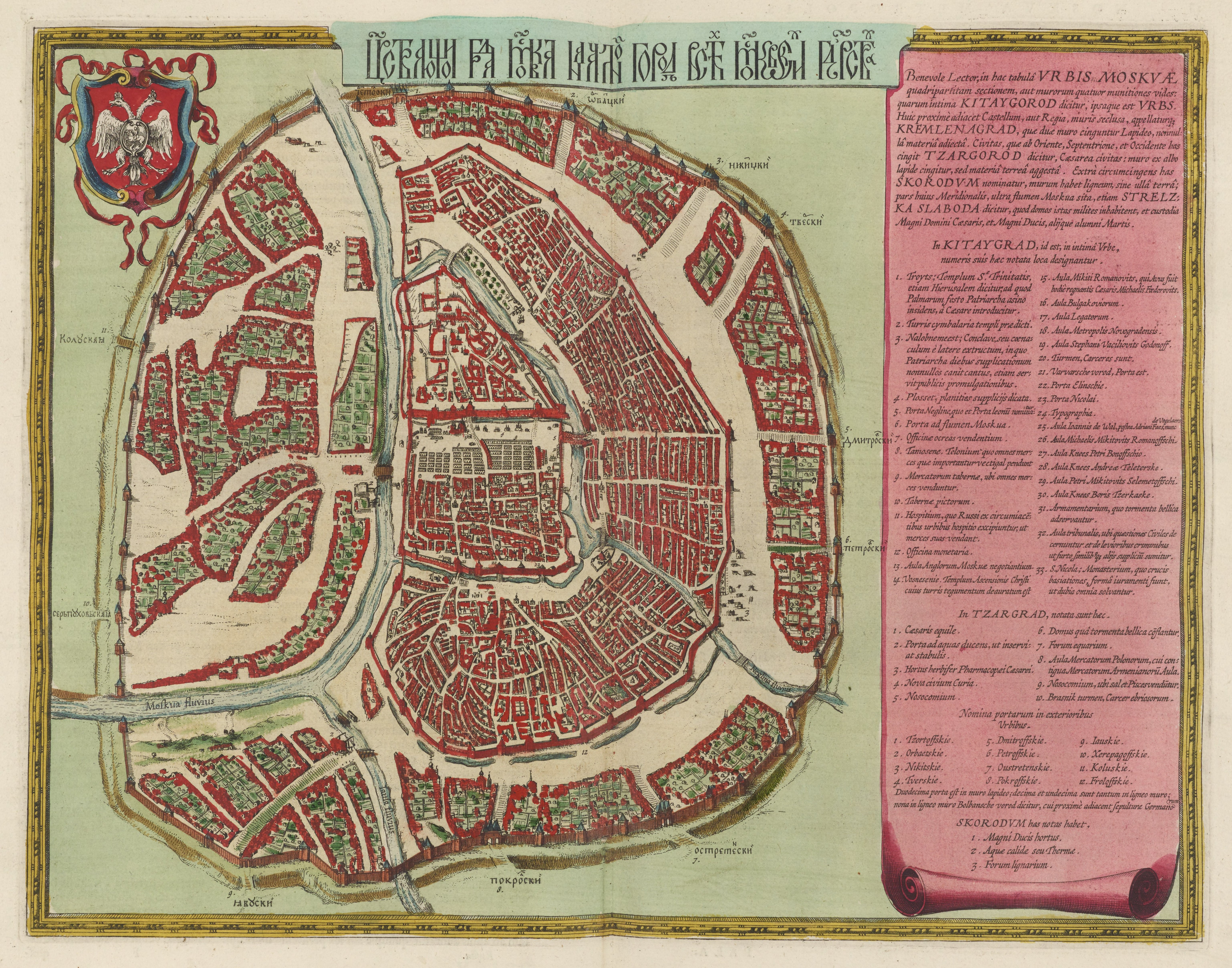 IMAGE 16: Moscow in the Seventeenth Century. ‘Tabulam Vrbis Moskvae’ (1665), in Joan Blaeu (1596-1673), Atlas Maior Sive Cosmographia Blaviana, Qua Solvm, Salvm, Coelvm, Accvratissime Describvntvr (Amsterdam: Joan Blaeu, 1665). Dimensions: Object Height: 37 cm; Object Width: 48 cm. List Number: 10017.091. Pub List Number: 10017.000. Image Number: 104187401.1.jp2. National Library of Scotland / David Rumsey Historical Map Collection. © 2000 by Cartography Associates. Attribution-NonCommercial-ShareAlike 3.0 Unported (CC BY-NC-SA 3.0).