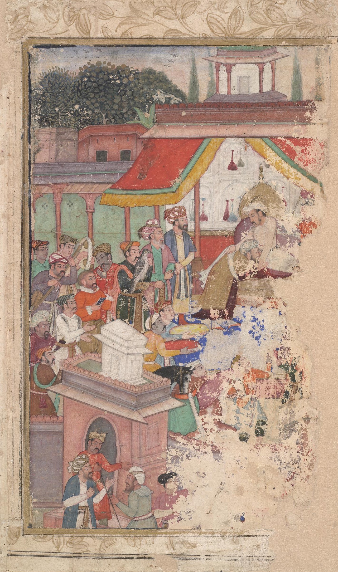 IMAGE 2: Early diplomatic encounters. ‘Jahangir investing a courtier with a robe of honour watched by Sir Thomas Roe, English ambassador to the court of Jahangir at Agra from 1615-18, and others’, ca. 1616. Description: “On paper. Colophon on verso gives calligrapher’s name, As’af ‘Ibadallah al-Rahim and date 23 Ramadan 985/4 December 1577.” Object Type: Painting. School/Style: Mughal Style. Production Place: Asia: South Asia: India. Dimensions: Image Height: 23.10 cm; Image Width: 14.50 cm; Sheet Height: 27.80 cm; Sheet Width: 16.10 cm. Donated by: Art Fund (as NACF). Acquisition Date: 1933. Department: Middle East. Registration and Museum Number: 1933,0610,0.1. © The Trustees of the British Museum. Creative Commons Attribution-NonCommercial-ShareAlike 4.0 International (CC BY-NC-SA 4.0).