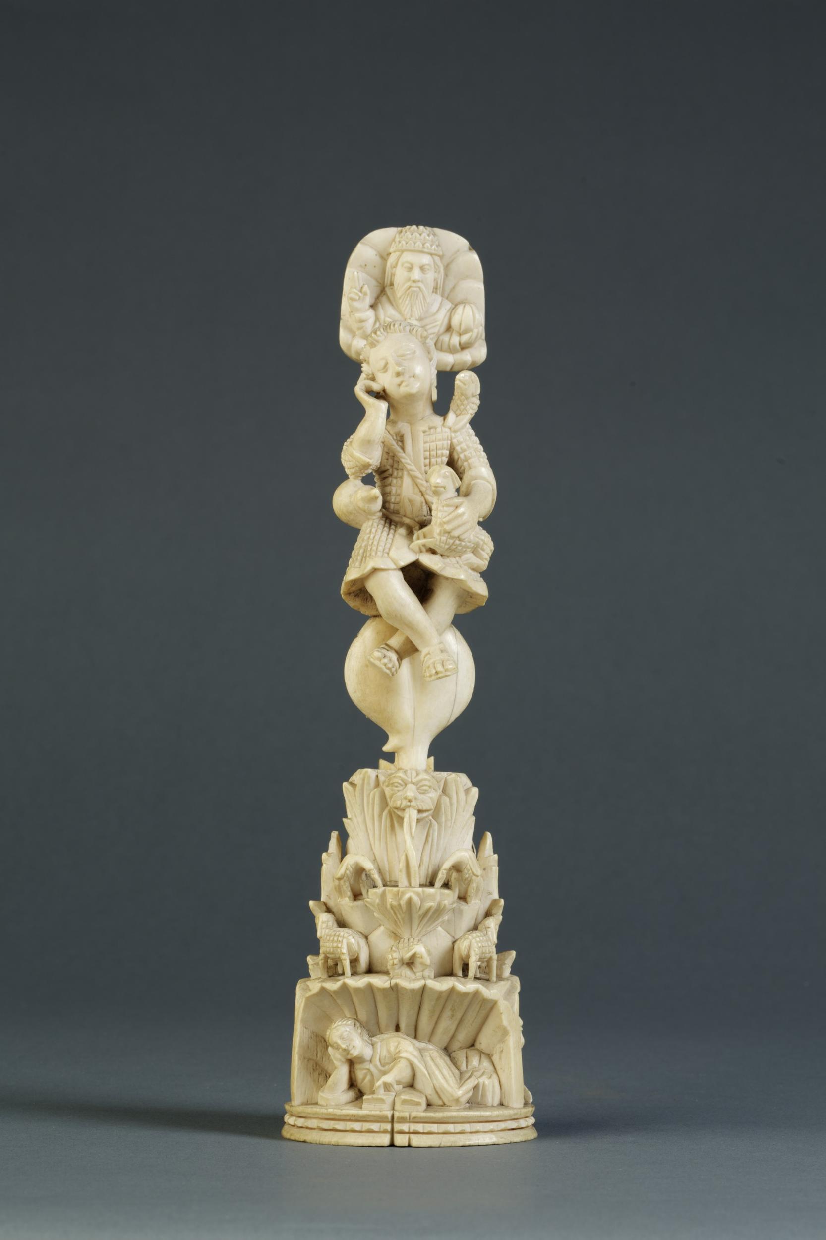 IMAGE 3: Indo-Portuguese communities were important groups with which East India Company servants engaged. Unknown Artist, ‘Figure group, [carved] ivory, ‘The Mount of the Good Shepherd’, Indo-Portuguese (Goa), ca. 1650′. Description: “This object was created in the Portuguese colony of Goa in about 1650. … ‘The Mount of Christ as the Good Shepherd’ is a common subject in Indo-Portuguese ivories, and seems to be unique to Goa. The figure of God the Father, carved in relief above the Christ Child, represents the Holy Spirit. Although the precise parallels and/or sources in Indian [art] are uncertain, this distinctive composition recurs again and again in Goan ivories, and the combination of the Christ Child in the guise of the shepherd with saints, a fountain, vegetation and animals suggest the richness of the natural world, in conjunction with Christian imagery. His seated pose, asleep, recalls images of the Buddha in Indian art. Ivory carving had a long tradition on the Indian subcontinent, and elaborate works of art were made, particularly as diplomatic gifts, often presented to Western rulers. Most of the ivory would have been exported from Mozambique in East Africa….Goa (on the West Coast of India) was a Portuguese colony at this time, and the style of carving combines Indian with European traditions. This subject is particular to Goan Indo-Portuguese ivories.” Dimensions: Height: Height: 24.6 cm. Museum number: A.38-1921. Gallery location: South Asia, Room 41, case 14. Sculpture Collection, The Victoria and Albert Museum, London.
