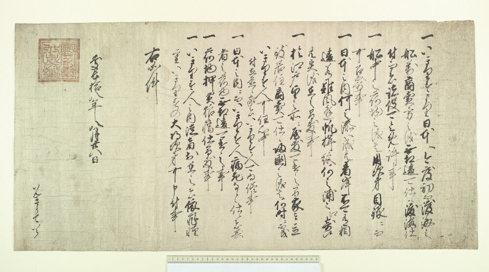 IMAGE 4: An example of an Asian ruler granting trading privileges to the East India Company. ‘Shuinjō’, 1613. Description: “Manuscript document, ink calligraphy on paper. Japanese, 17th century, dated 1613. Shuinjo. The original vermillion-seal document of Shogun Tokugawa Ieyasu, granting trade privileges in Japan to the English East India Company in 1613. Extent: 1 leaf”. ID: 70d882bc-a8d6-4741-adbb-8621ed0a73d6. Shelfmark: Bodleian Library MS. Jap. b.2. Collections: Japanese Manuscripts, Masterpieces of the Non-Western Book, Bodleian Libraries, University of Oxford. Photograph: © Bodleian Libraries, University of Oxford