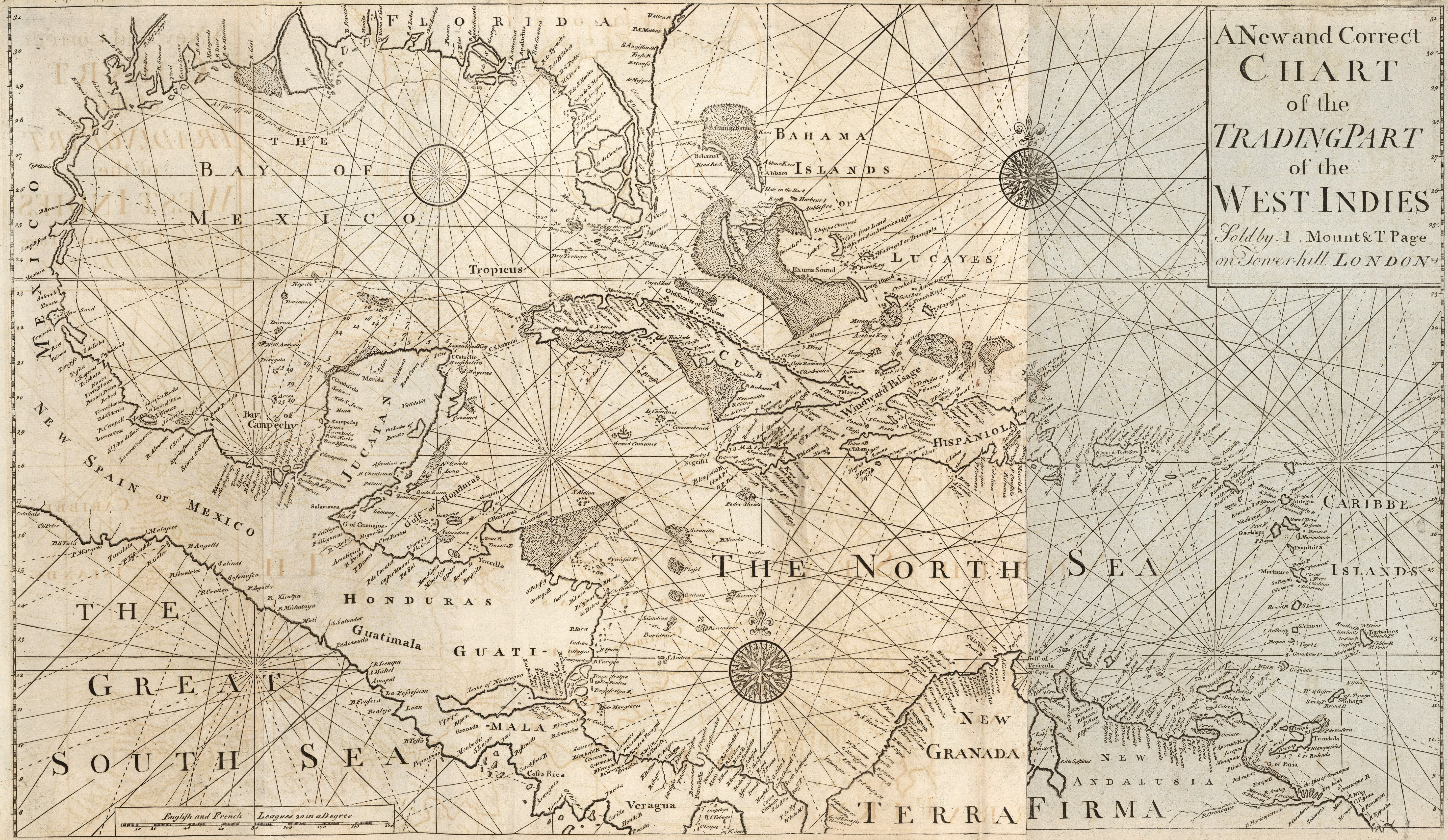 IMAGE 3: How can scholars use cartography to write global maritime histories? Describing the West-India Navigation, from Hudson’s Bay to the River Amazones… (London: Mount and Davidson, 1794), Book 4, 1794 edition. Dimensions: Object Height: 48 cm; Object Width: 81 cm. Scale: 1: 5,700,000. List Number: 12434.067. Pub List Number: 12434.000. Image Number: 12434067.jp2. David Rumsey Historical Map Collection. © 2000 by Cartography Associates. Attribution-NonCommercial-ShareAlike 3.0 Unported (CC BY-NC-SA 3.0).