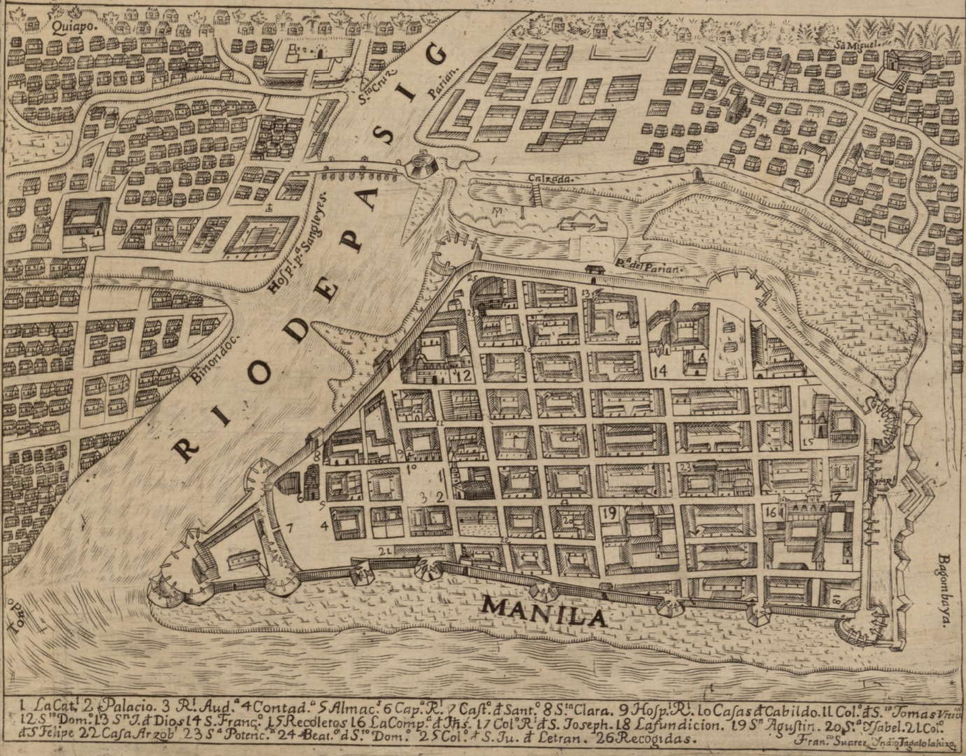 IMAGE 7: Manila offers a good example of a port city in Asia where individuals from diverse cultural and ethnic backgrounds mingled. Detail of the city of Manila from the ‘Carta hydrographica y chorographica de las Yslas Filipinas : dedicada al Rey Nuestro Señor por el Mariscal d. Campo D. Fernando Valdes Tamon Cavallo del Orden de Santiago de Govor. Y Capn’. Contributors: Pedro Murillo Velarde and Nicolás de la Cruz Bagay. Manila, 1734. Description: “Relief shown pictorially. Shows names of coastal towns and historical sailing routes. In lower portion of map: Le esculpio Nicolas de la Cruz Bagay … 1734. Includes text, descriptive notes, ancillary maps of Guam, cities of Manila, Cavite, and Zamboanga, and illustrations depicting episodes from the daily life of different peoples on the islands.” Call Number/Physical Location: G8060 1734 .M8. Library of Congress Geography and Map Division, Washington, D.C.