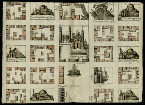 IMAGE 23: Map of Cholula, Tlaxcala Mexico, 1581. Relaciones Geográficas of Mexico and Guatemala, 1577-1585, Joaquín García Icazbalceta Manuscript Collection, Benson Latin American Collection, University of Texas at Austin. Description: “This map from Cholula in the present-day state of Puebla, Mexico, is from the Relaciones Geográficas collection in the Benson Latin American Collection at the University of Texas at Austin. Dating from between 1578 and 1586, the Relaciones Geográficas are responses to a questionnaire initiated by the Spanish crown in 1577, requesting information about Spanish-held territories in the Americas. The questionnaires covered such topics as demographics, political administration, languages spoken, physical terrain, and vegetation. The crown received 191 responses to these questionnaires. Of the 167 responses known to exist, 43 are in the Benson Latin American Collection. The others are held at the Archivo General de Indias, Seville, and the Real Academia de la Historia, Madrid. The relaciones contain important historical, cultural, and geographical information about New Spain during the 16th century. Many of the questionnaires are accompanied by maps and pictures. These both convey information about such topics as the colonial economy and the spread of European religion in New Spain and are artifacts for the study of the history of Latin American art and manuscript painting. This map dates from 1581 and has glosses in Nahuatl, the language of the Aztecs, and in Spanish.” Dimensions: 31 x 44 cm. Image downloaded from the World Digital Library.