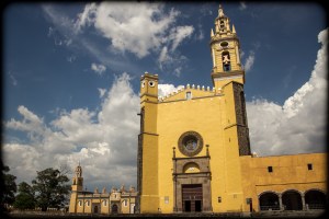 IMAGE 25: Church of San Gabriel, Cholula, Mexico, 1555-1570. Description from Dana Leibsohn and Barbara E. Mundy, ‘San Gabriel, Cholula’, Vistas Gallery, Vistas: Visual Culture in Spanish America, 1520-1820 (2015): “This sixteenth century “fortress church” was designed by Franciscan friars as part of their efforts to evangelize the Nahuas in Central Mexico. It was meant to replace the nearby pre-Hispanic pyramid as a center of religious and ritual life….Like most mendicant churches built in native communities, Cholula is a simple, single-nave church. The battlements at the roof were not literally for defense, although they may have been included to emphasize the metaphoric “military conquest” of New Spain. Above the main door, a pattern of carved flowers frames the deep-set round window. Its style reveals it to have been carved by a native artisan. To the left, the enormous Capilla Real (“Royal Chapel”) is the only one of its kind in New Spain. Its roof is supported by a forest of columns and its architecture most closely resembles the Great Mosque in Córdoba, Spain….San Gabriel was built by the Franciscans, who were charged with the evangelization of this densely populated region of central Mexico. Although some friars had training in architecture and engineering, they also relied on the skills of native builders to create the large, vaulted structures….The church is built of stone, brick and masonry. It was plastered and painted both inside and out. The interior vaulting systems used throughout to support the roof were European technology that the mendicant friars introduced to native builders. Since pre-Hispanic sacred architecture emphasized mass (great pyramids) rather than volume (interior space), such churches were as novel among 16th century Amerindians as the Christianity they sought to inspire….Between 1530 and 1580, mendicant friars commissioned hundreds of churches and dozens of larger monastic complexes like this one in New Spain. During its heyday, Cholula’s monastery buzzed with activity, as more than thirty friars taught native children from elite families within, and catechized adults in the outside courtyard. This same church complex appears at the center of the Relación Geográfica map from Cholula (also in Vistas), showing that other than the change in color, the building’s outward appearance has changed little over four hundred years….The Catholic church was deeply embedded into the fabric of urban life in Spanish America. Franciscans pointedly chose Choulua as a center for evangelization, since it was once a center for worship of the pre-Hispanic deity Quetzalcoatl, whose pyramid was mined for material to build the monastic complex. The hybrid styles of architecture in Cholula probably reflect the Franciscan understanding of their mission. For instance, the unusual side chapel looks like an Islamic mosque. In 16th century Spain, all mosques had been destroyed or converted into churches during the war of the Reconquista, as reminder of Christianity’s triumph over Islam. The Franciscans thought of their work in Cholula as another such religious conquest. Likewise, the battlements at the top of the building—which are decorative, not functional—added to the building’s metaphor of a conquering Christianity.” Photograph taken by Alexandro G. Alonso S. on June 27, 2013. Image downloaded from Wikimedia Commons.