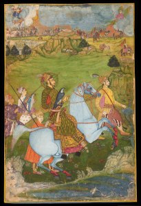 July 5, 2020July 6, 2020 IMAGE 8: Creating relationships with local South Asian rulers was an important strategy for East India Company servants. ‘Miniature. “A Mounted Prince Hunting with a Falcon”, India, Deccan, Golconda [?]; 1680-1700, Leaf: 29.9 × 19.8 cm’. Description: “Although it was painted in the period just around the time when Golconda – the last of the independent Deccan states – was forced to surrender to the Great Mughal Aurangzeb in 1687, this miniature still features the splendor and intense colors that characterized earlier painting from this region. … The splendidly rendered prince reflects the formal portraiture of Mughal Delhi that at this point had also made its mark in the Deccan, but the radiant colors of the textiles against the stallion’s refined, light-blue tone reveals the painter’s southern origins. … In the distance, behind a diminutive city, the army is marching with horses, elephants, and camels, fluttering banners, ensigns, kettledrums, and trumpets. … the men are also accompanied by two angels, one holding a sword, the other a trumpet. There is no information at present about the identity of the artist and the elegant prince, but the painting’s fascinating richness of detail and high quality are indisputable.” Inv. no. 13/2015. © The David Collection